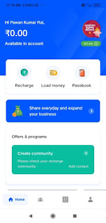 8 – mPIN सेट होने के बाद आपके सामने निचे दिए गये Screenshot के अनुसार तीन ऑप्सन नजर आएंगे पहला Recharge, Load Money तथा Passbook देखने को मिलेंगे ।